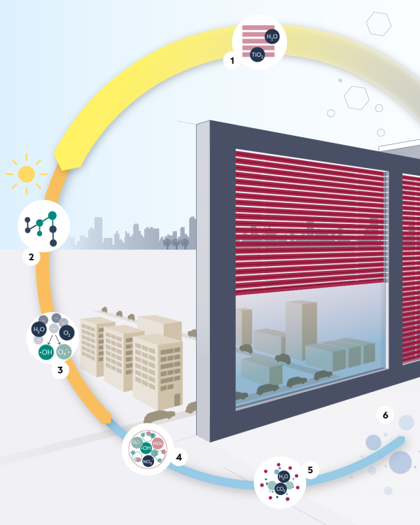 Der photokatalytische Rollladen RegaCLEAN filtert mit der Kraft der Sonne Schadstoffe aus der Luft und reinigt sich selbst.