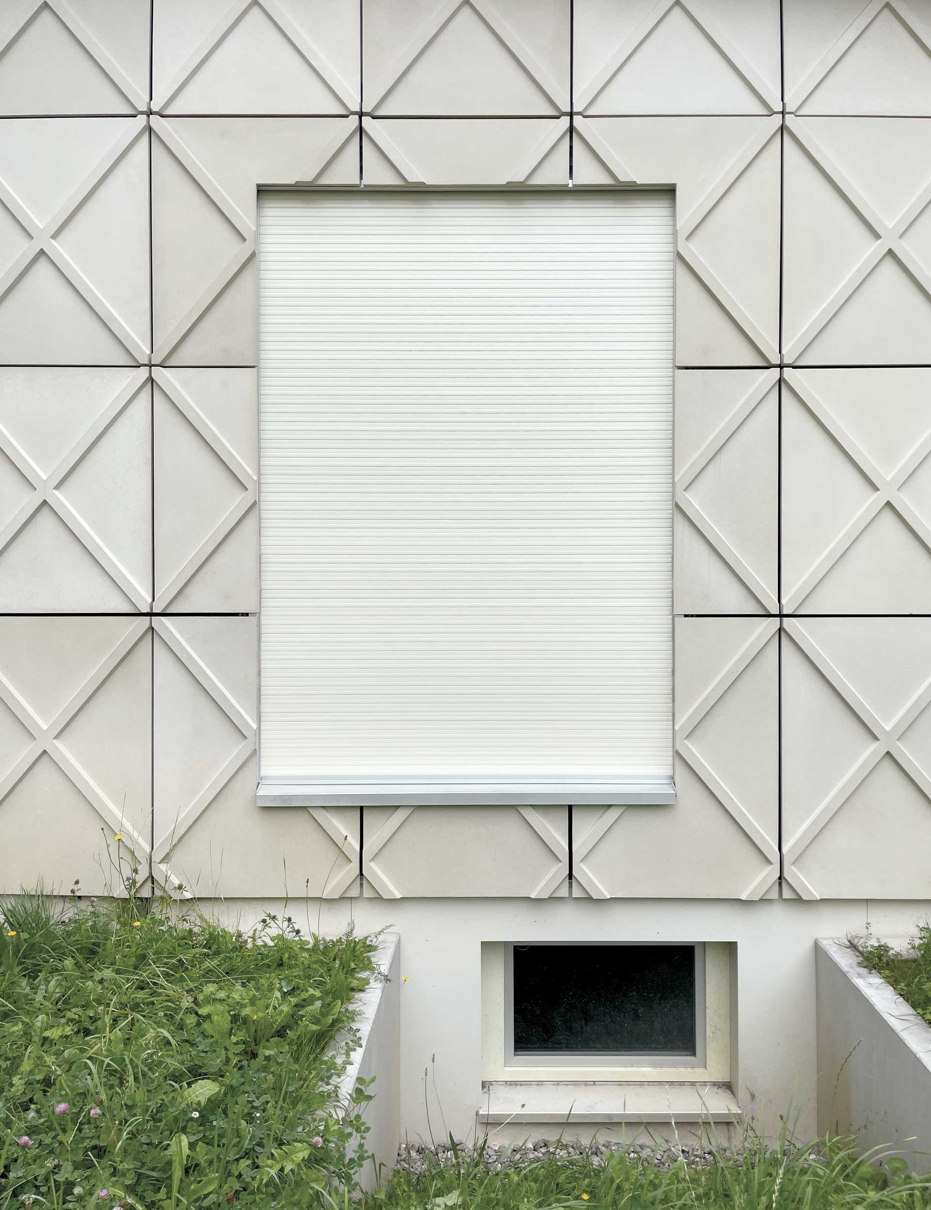 Les 109 appartements des trois immeubles de Schuppis II ont été équipés d’un total de 581 volets roulants de Regazzi. Regapak® se glisse dans les plus petites niches et ne nécessite pas de coffre. Pour correspondre à la conception filigrane de la façade, le maître d’ouvrage a décidé d’installer les volets roulants sans éléments d’angle. L’élégante solution des partenaires architectes de BS+EMI illustre la flexibilité de conception des volets roulants. L’espacement des barres de neuf millimètres laisse entrer beaucoup de lumière et d’air et permet de regarder vers l’extérieur. Cela s’inscrit également dans l’idée des nouvelles constructions de la cité-jardin, à savoir préserver la sphère privée tout en conservant la transparence. La couleur spéciale choisie s’accorde harmonieusement avec les panneaux muraux finement modulés.