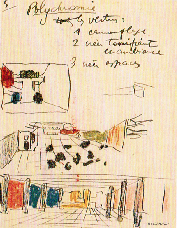 Quando il pittore autodidatta entrò nel mondo dell’architettura nel 1924, iniziò a inserire il colore nei suoi progetti da subito. Diceva: «In architettura, il colore è uno strumento potente quanto la pianta e la sezione. Anzi, di più: la policromia, elemento stesso della pianta e della sezione.»1